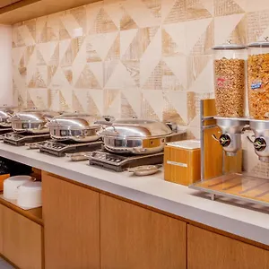 As for dining options, The Fairfield Inn & Suites By Marriott New York Manhattan/Times Square provides a delightful culinary experience. Guests can enjoy cocktails and appetizers at The Sky Room, the hotel's rooftop lounge, which offers both indoor and outdoor seating space with stunning city views. The hotel also offers a complimentary continental breakfast, ensuring guests' satisfaction. Additionally, within a short walking distance, guests can find a variety of dining options, including Gotham Bistro and Capizzi, offering American and Italian cuisine, as well as a pizzeria and bar.