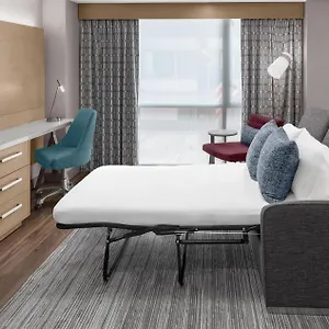 The Hilton Garden Inn New York Manhattan Midtown East offers a variety of spacious rooms, each featuring elegant furniture and a comfortable work area. All rooms are carpeted and allergy-friendly, ensuring a pleasant stay for all guests. The rooms come equipped with modern amenities such as laptop-compatible safes, free WiFi, and air conditioning. The property provides various room types including the Premium King Room, Deluxe Queen Room, and Premium Queen Room options, all designed to provide guests with ultimate comfort. These options include premium bedding, plush hypoallergenic pillows, and a flat-screen TV with satellite channels. Some rooms also offer the convenience of a coffee maker and a mini-fridge. Room 206, located on the 26th floor, provides a cozy retreat for those seeking a peaceful night's sleep after exploring the bustling streets of New York.