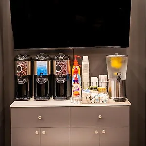 Start your day with a complimentary Bright Side Breakfast® at The La Quinta By Wyndham Time Square South Hotel, featuring a variety of delicious options. Art enthusiasts will be thrilled to visit world-class museums like the Met and MoMA. The property offers a shared lounge for guests to enjoy, while sports fans can catch a pro game in every season. Plus, The La Quinta By Wyndham Time Square South Hotel provides extra touches such as pet-friendly rooms and same-day dry cleaning services. Unwind in one of the 80 non-smoking guest rooms at The La Quinta By Wyndham Time Square South New York, each offering a comfortable stay with a range of amenities. The rooms feature individual climate control and some include an iron, while others offer coffee/tea making equipment and a work desk. Stay connected with complimentary wireless internet and relax in front of the flat-screen TV with satellite channels. For added safety, some rooms provide a laptop-size safe and smoke detectors. The private bathrooms provide modern comfort facilities such as hair dryers and a shower cap, with some featuring a separate toilet and shower for added convenience. Guests can also find refreshments like teas and coffee available at reception.